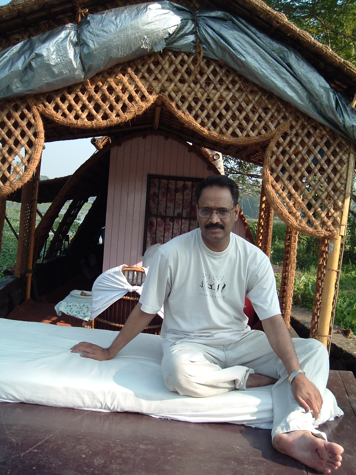 சூரியன் மறையும் வரை ஓடிய படகு, ஓர் கிராமத்துக்கு அருகே நங்கூரமிட்டு நிறுத்தப்பட்டது. கேரளத்துக்கே உரிய சுவையுடன் சோறும் மீனும் மரக்கறியுடன் பரிமாறப்பட்டது. பக்கத்து ஊர்கோயிலில் இருந்து பகவத்கீதை பாட்டுருவில் வந்தது. இடைக்கிடை வானத்தில் நட்சத்திர பூக்களாக விரிந்து வெடித்த வாணங்கள் இன்னும் இரண்டு நாளில் நத்தார் பண்டிகை எனக்கட்டியம் கூறின. ஆற்றுநீரைத் தழுவி வீசிய காற்று இலகுவாகப் எம்மை படுக்கைக்கு அழைத்தது.