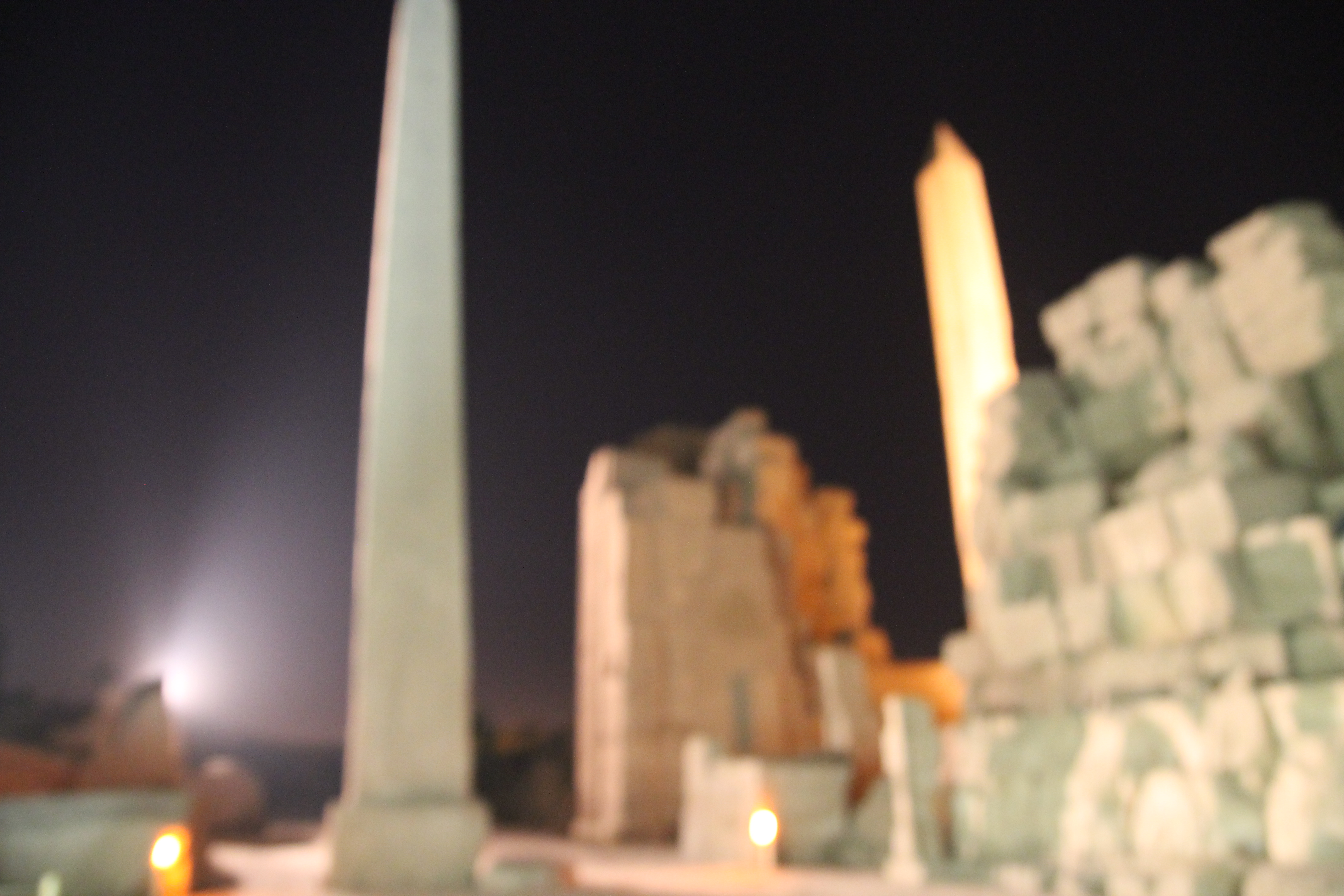 ‘இந்த ஓப்லிஸ்க் சின்னம் ஆண்டவன் ஆமுனுக்காக கொடுக்கப்பட்டது. மேலும் இதன் முனைகள் எலக்றத்தால் (Electrum- தங்கமும் வெள்ளியும் கலந்த கலவை) எப்பொழுதும் பிரகாசிக்கும் என்பதை இதைப் பார்ப்பவர்கள் அறிய வேண்டும் என பண்டைய எகிப்திய மொழியில் எழுதப்பட்டதாக அறிந்தேன். ஒப்லிக்ஸ் சின்னத்தின் ஒரு பாகம் உடைந்து அதன் அருகே நிலத்தில் துண்டாகக் கிடந்தது.