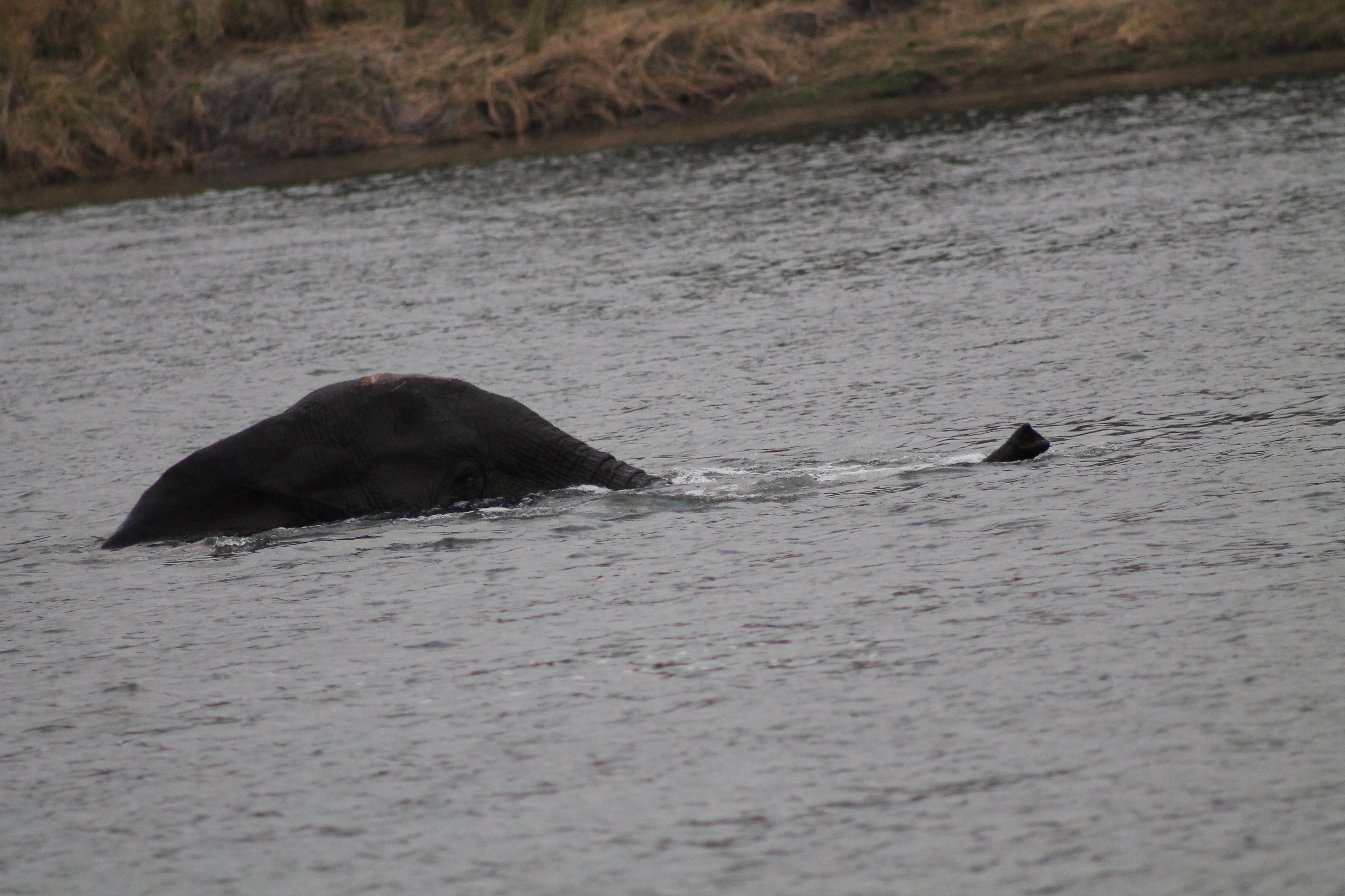 காட்டில் இருந்து தீவுக்கு செல்வதற்கு கொம்பன் யானையொன்று நதியில் மெதுவாக இறங்கியது கண்ணுக்குத் தெரிந்தது. பின்பு பல நிமிடம் தண்ணீருக்குள் மறைந்துவிட்டது. ஆனால் பின்பு இடைக்கிடை தும்பிக்கையின் நுனி மட்டும் காற்றையும் தண்ணீரையும் மத்தாப்புபோல் ஊதிவிட்டு மறைந்துவிடும். இப்படியாக நீந்தி அரைக்கிலோமீட்டர் அகலமான நதியைக் கடந்து அந்தத் தீவில் சென்று பச்சைப்புதர்கள் மத்தியில் மறைந்தது. நாம் சென்ற காலம் கோடைகாலம் அந்தத் தீவில் உள்ள பச்சைத்தளைகளைத் தேடி அவை போயிருக்கவேண்டும். யானைகள் நதியில் நீந்தும் என அறிந்தாலும், யானையின் நீந்தும் ஆற்றலைப் பார்க்க முடிந்தது இதுவே முதல் தடவை. அதைவிட தனது நீளமான தும்பிக்கையை மனிதர்கள் மூங்கில் குழாயை பாவித்ததுபோல் பாவித்தது பரவசமான காட்சி.