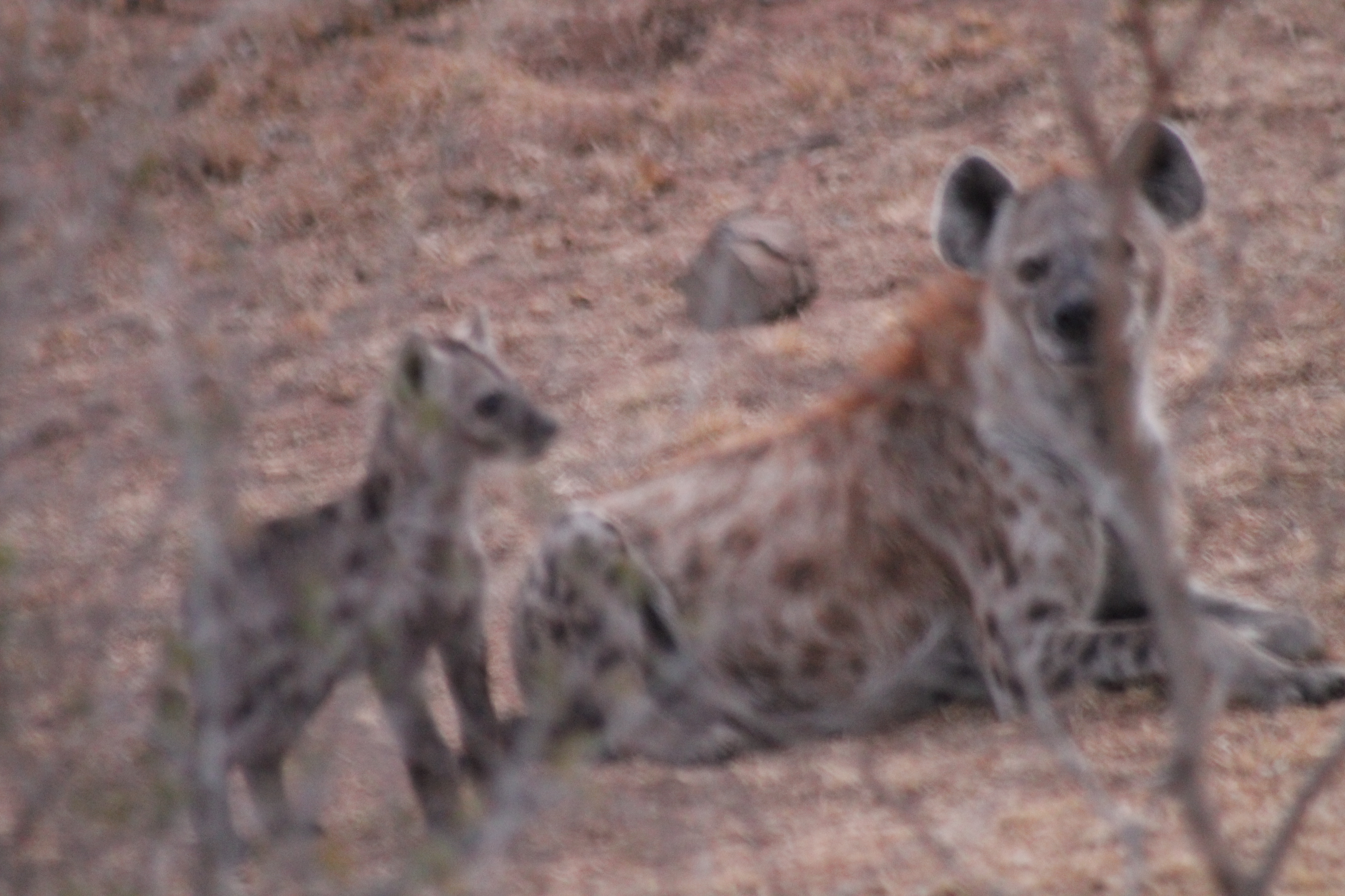 காட்டினுள்ளே நான் வாகனத்தில் சென்றபோது இருமுறை புள்ளிகள் கொண்ட கழுதைப்புலிகளைக் கண்டேன். எனினும் அவை வாகனத்தைப் பொருட்படுத்தாமல் பாதையைக் கடந்து போய்க்கொண்டிருந்தன. மிருக வைத்தியரான எனக்கு அவற்றின் உடல் அமைப்பு அதன் தேவைக்கேற்ப விருத்தியடைந்துள்ளது தெரிந்தது.