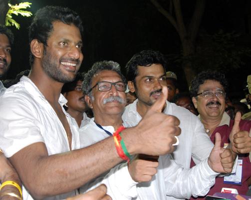 மச்சினன்மார் அணிக்கு எதிராக களம் புகுந்தனர் பாண்டவர் அணி விஷாலும் நாசரும்.