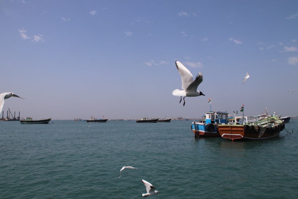 அந்த வள்ளத்தைச் சுற்றி கடற்காகங்கள் கூட்டமாகப் பறந்து கொண்டிருந்தன. நான் பார்த்தபோது ஒரு பெண் குழந்தை, அம்மா கொடுத்த டோக்கிளாவையும்( Dhokla) பறவைகளுக்காகக் கடலுக்குள் எறிந்தது. மற்றவர்கள் கையிலிருந்த தங்களது உணவுகளை வீசினார்கள் கடற்காகங்கள் துவாரகையில் இப்பொழுது மரக்கறி உணவுக்குப் பழகி விட்டன. நான் நினைத்தேன். மீனை அவை மறந்து பல காலமாகிவிட்டது.