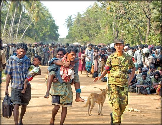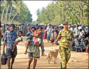 இலங்கைப் படைகளிடம் தஞ்சமடையும் மக்கள்