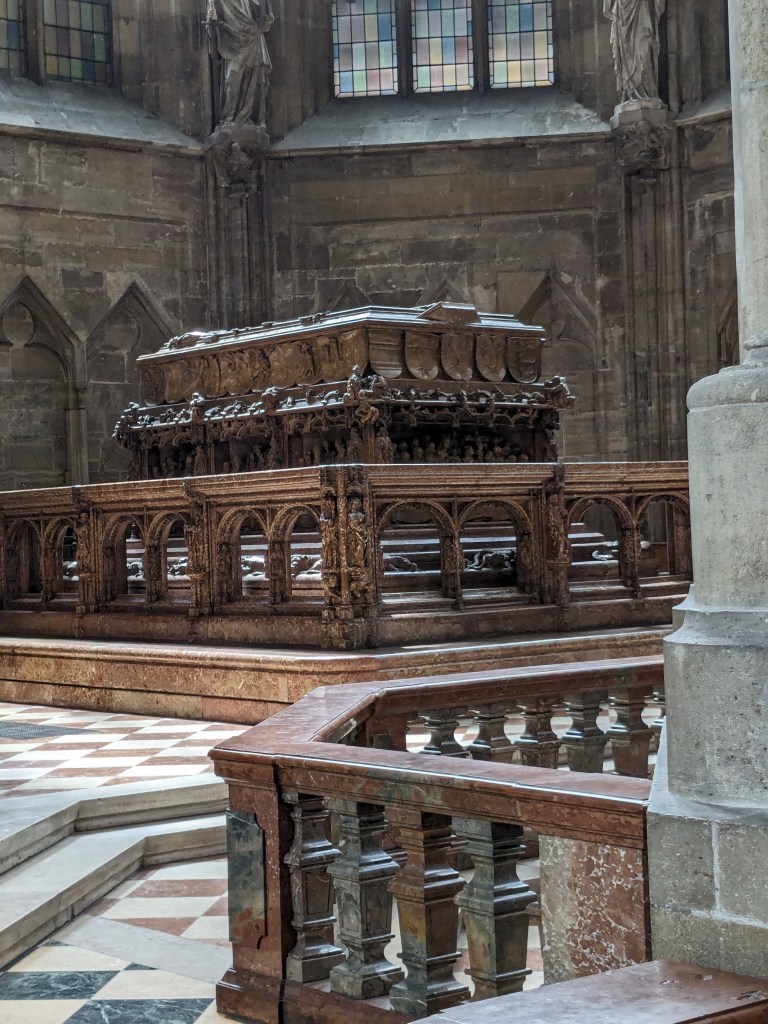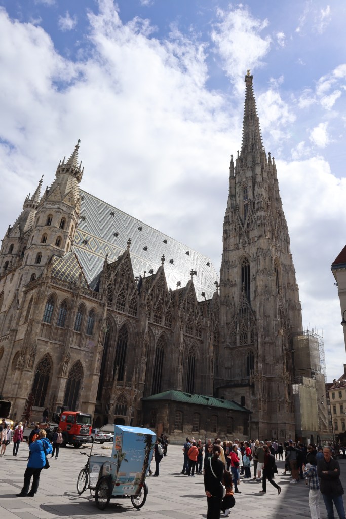 ஒரே நாளில் வீயன்னாவை முழுவதுமாக சுற்றி பார்க்க முடியாது என்ற குறை இருந்தபோதும் வீயன்னாவின் (Iconic )அடையாளமாக நிற்பது புனித ஸ்ரிபன் கத்தோலிக்க தேவாலயமாகும். இந்த தேவாலயம் கி. பி 1147 கட்டத் தொடங்கியபோதும், தற்போது நாங்கள் பார்ப்பது 13 ஆவது நூற்றாண்டில் வீயன்னாவின் நடுவே கட்டப்பட்ட தேவாலயம். ஆயிரம் வருடங்கள் தொடர்ச்சியாக மாற்றங்களுடன் ரோமானிக் (Romanic Architecture)) மற்றும் கொத்திக் (Gothic Archetecture) கட்டிடக்கலையில் கட்டப்பட்டது. ஐரோப்பாவில் நடந்த போர்களால், பல தடவை உடைந்தபோது போது மீண்டும் , மீண்டும் புதிப்பித்து கட்டப்பட்ட ஐரோப்பாவின் முக்கிய தேவாலயமாகும். இந்த தேவாலயத்தின் நிலவறையில் அடியில் பிரேதங்களை வைப்பதற்கான சவக்காலை உள்ளது என்கிறார்கள். இந்த தேவாலயம் கட்டப்பட்ட இடம் ரோமர்களது சவக்காலை இருந்த இடமென்கிறார்கள். தேவாலயத்தின் உள்ளேயும் ஒரு அரசரது பிரேதம் கொண்ட கல்லாலான சவப்பெட்டி ( Sarcophagus) வைக்கப்பட்டுள்ளது.