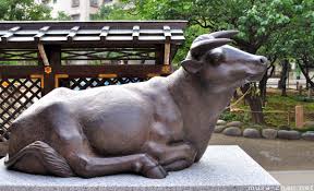 இந்த காளையில் உருவத்தில் இரகசியம் ஏதோ இருக்கவேண்டும் என்ற என் நினைவு மனதை கோடைகாலத்து இலையானாக மொய்தபடி இருக்க அந்த ஆலயத்தின் உட்சென்றேன். ஆலயம், மரங்கள் பூங்கா என அழகான பின்னணியில் இருந்தது . இந்த ஷின்டோ ஆலயம் 903இல் இறந்த ( Michizane) மிசிசான் என்ற ஒரு அறிஞரது சடலத்தை கொயோட்டாவிலிருந்து (Kyoto) வண்டியில் வைத்து இழுத்து வந்த இந்த காளை மாடு , வண்டி இந்த இடத்தை வந்ததும் நகர மறுத்துவிட்ட தாகவும், அதனால் மக்கள் இதுவே அந்த அறிஞரின் இறுதியான இடமென நினைத்து இங்கே அவரது சடலத்தை அடக்கம் செய்து அவருக்கு சமாதி கட்டப்பட்டது. பிற்காலத்தில் இந்த சமாதியருகே இந்த ஷின்டோ ஆலயம் உருவாகியது. ஆலய முன்றலில் சடலத்தை இங்கு கொண்டு வந்த அந்த காளையின் உருவம் வெண்கலத்தால் செய்யப்பட்டுள்ளது என அறிந்தேன்.