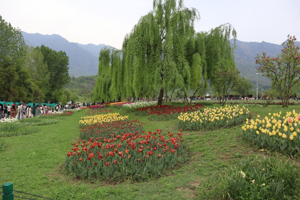 இங்குள்ள இந்திரா காந்தி நினைவுத் ட்யூலிப் பூங்கா, நாங்கள் சென்ற வேளையில் பல வண்ண மலர்களால் குலுங்கிக் கொண்டிருந்தது. இது ஆசியாவின் மிகப் பெரியதாகும். கடந்த ஆண்டு நெதர்லாந்து சென்றபோது, மகரந்த ஒவ்வாமையால், ட்யூலிப் பூந்தோட்டங்களுக்கு செல்லத் தவிர்த்தேன். ஆனால் இங்கு சென்றுவந்தேன். இரு பூங்காக்களும் அருகருகே இருப்பதால் எங்களுக்கு வசதியாக இருந்தது.