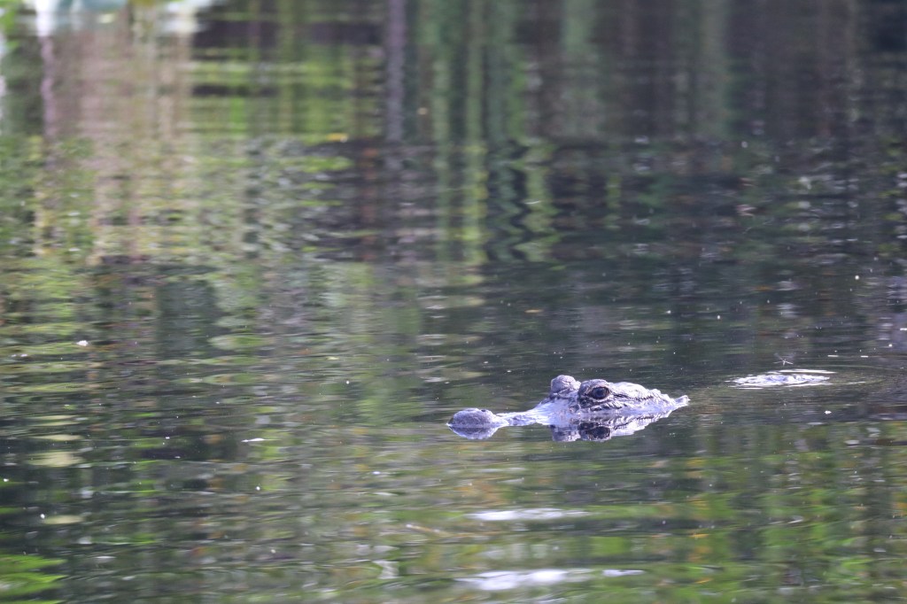 இந்தச் சுற்றுலாவில் இரண்டு அலிகேட்டர்களை சந்தித்தேன். அவற்றின் தலைகள் மட்டுமே நீரின் மேல் தெரிந்தன. அலிகேட்டர்கள் அரை மணி நேரத்திற்கு ஒருமுறை மட்டுமே மூச்செடுப்பவை. மூச்செடுக்கும்போது மட்டுமே அவை நீரின் மேல் தோன்றும். அவற்றின் இதயத் துடிப்பு ஒரு நிமிடத்திற்கு 2–3 முறை மட்டுமே இருக்கும்.